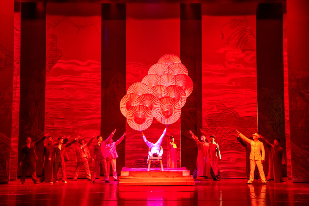 7月5日晚,大连杂技团原创大型杂技主题晚会《旌旗》在辽宁大剧院展演。